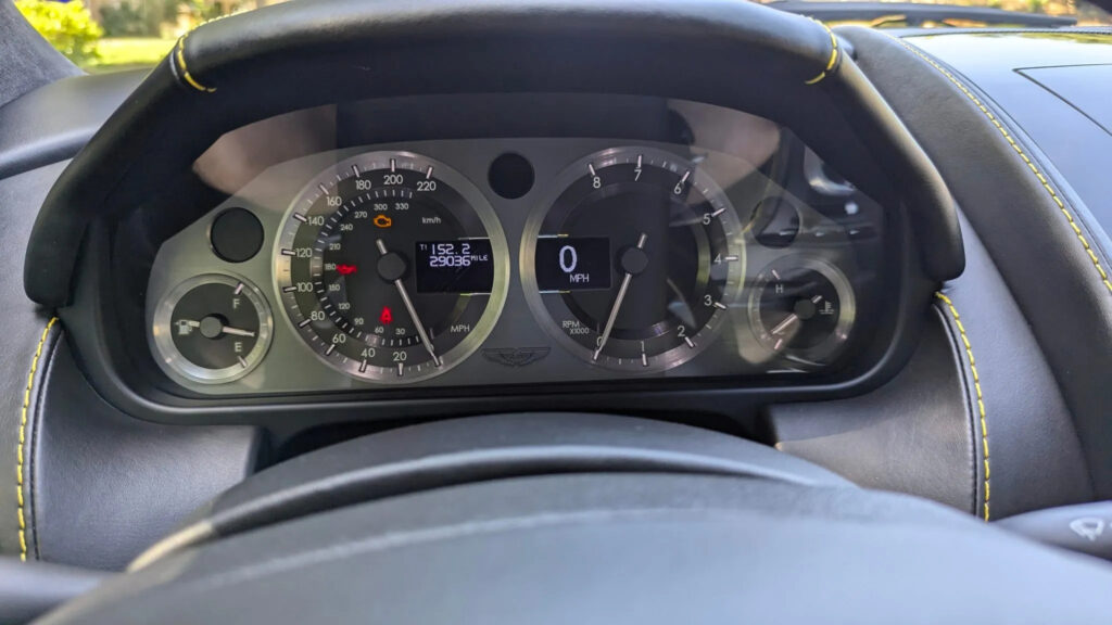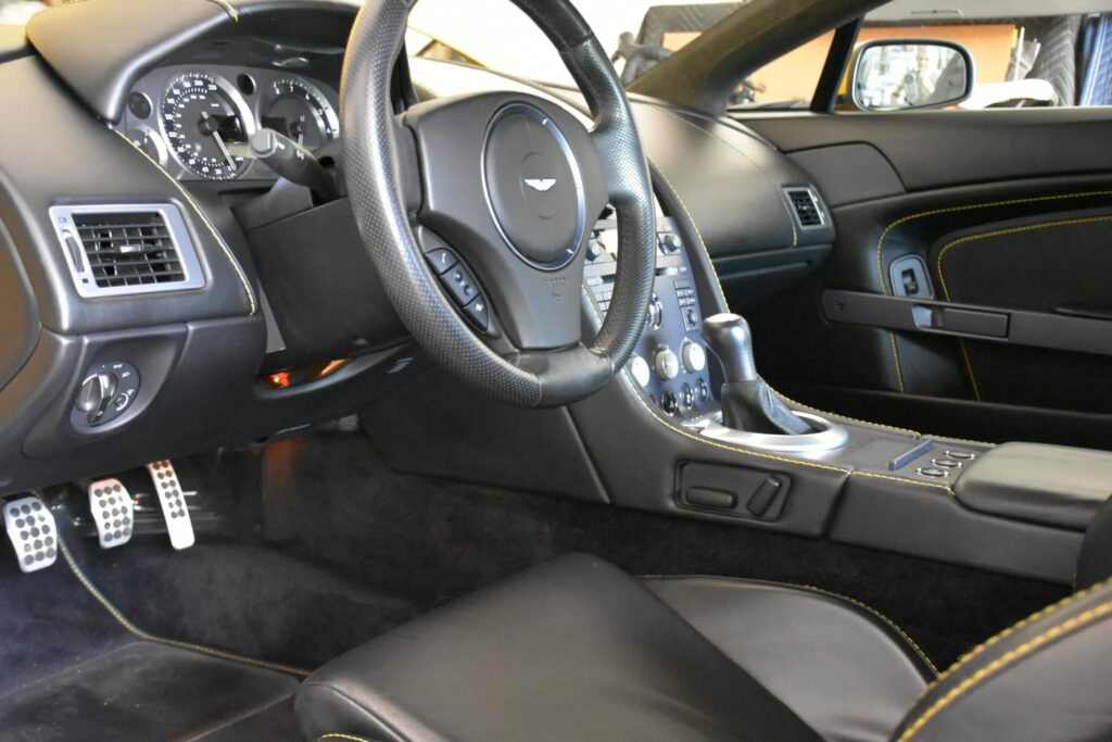 Inside, Aston Martin’s craftsmanship is matched to striking 21st century style. The dials are made from aluminium, and together with the switchgear have a very distinct design and unique Aston Martin look and feel.
