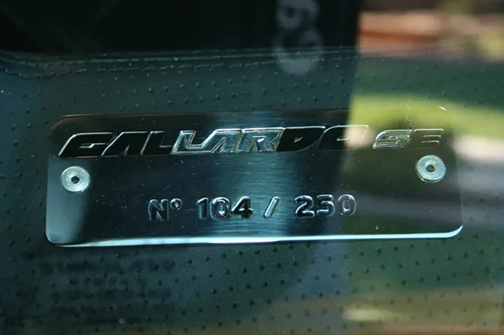 Like the standard model, the Gallardo SE is equipped with permanent 4WD, a 6 speed gearbox, an aluminum space frame, ESP and ASR, ABS, ABD, air conditioning, as well as two front and two side airbags.