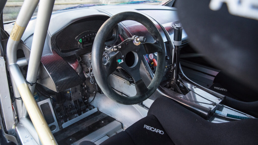 The DBRS9 has a six-speed H-pattern gearbox with new, shorter ratios for competition use, which can be upgraded to a full sequential racing box. The car’s ride has been lowered and the double wishbone suspension has been rose jointed and fitted with two-way adjustable Koni dampers and stiffened competition springs.