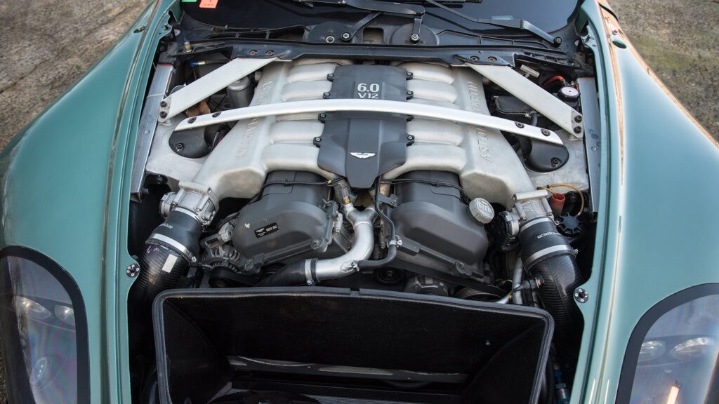 Using the standard DB9 platform Prodrive outfitted the car with roll-cage and a special version of the V12 which could produce 550 bhp. The car was fitted with carbon fiber panels and a stripped out interior which reduced overall weight by 1,100 lbs (480 kg).