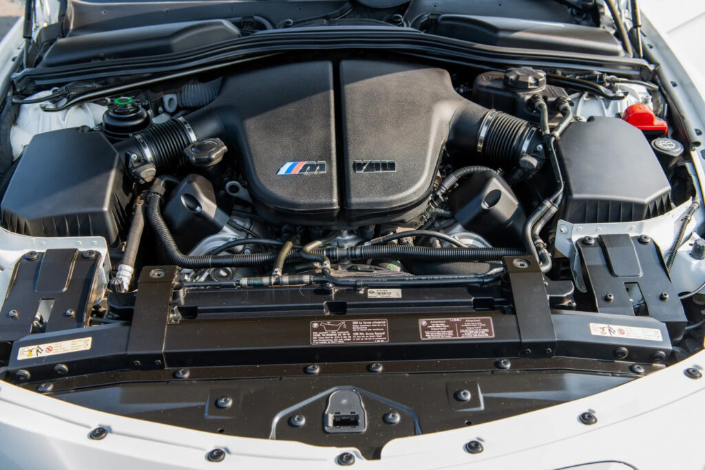 Powered by the same 4,999cc engine that set new standards in the M5, the 507bhp power output ensures that the new M6 maintains the M car tradition of breaking the 100bhp per litre benchmark. Peak torque of 520Nm is developed at 6,100rpm of which 450Nm is available from just 3,500rpm. The 90-degree V10 aluminium-silicon alloy engine block is extremely light yet robust and is the first V-arrangement engine to use a bedplate construction. The aluminium bedplate with cast-iron inlays ensures the engine’s rigidity throughout the rev range, but the complete unit still weighs just 240kg.