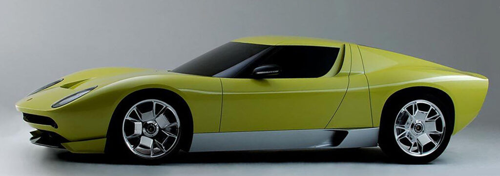 The new car retains the extraordinary purity of line, characteristic of the original Miura: the designer’s intervention has been defined by refining the contours and eliminating any superfluous detail, in order to enhance the clean, simple lines and perfectly balanced proportions of the original that so impassioned enthusiasts.