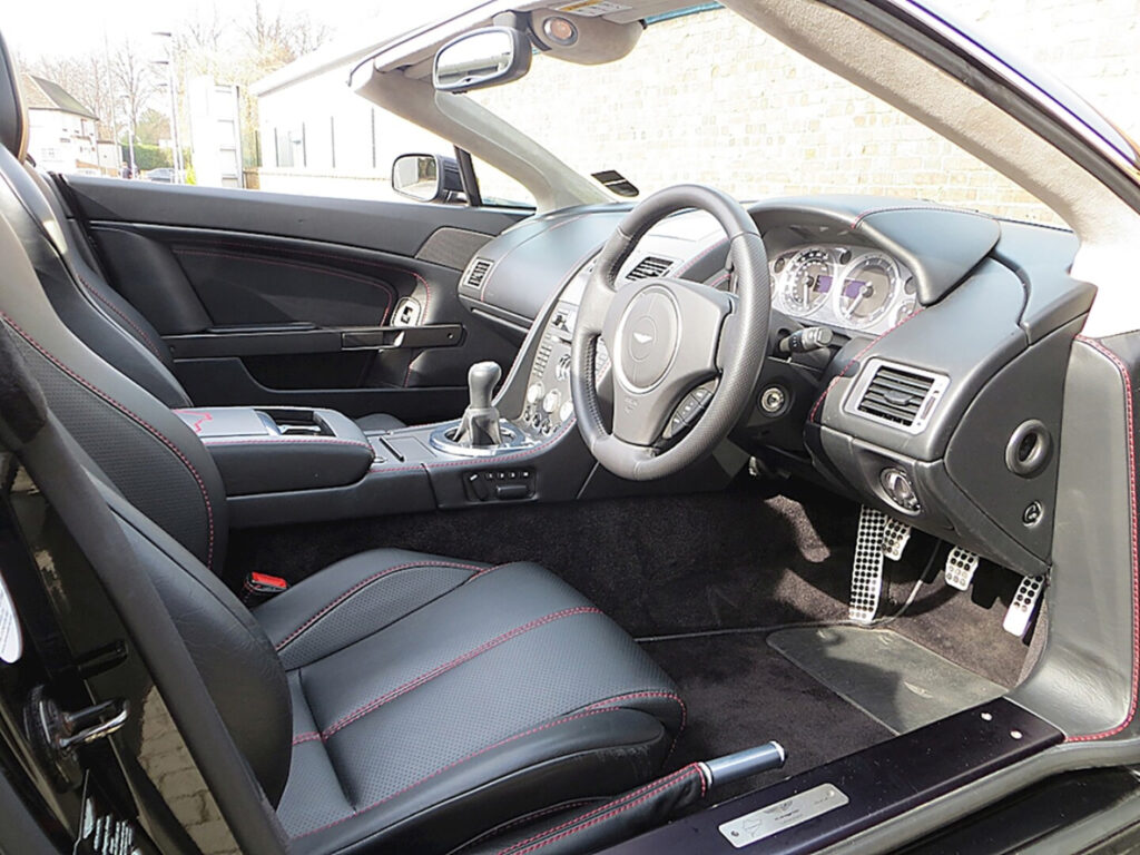 Interior enhancements include perforated black leather seats, micro-spin alloy fascia trim and a unique numbered sill plaque. The Vantage N400 will be available in three new exterior colours; Bergwerk Black, Lightning Silver or Karussell Orange, with either Sportshift automated manual or conventional manual transmission and in either Coupe or Roadster forms. Additionally, the Vantage N400 comes equipped with a range of normally optional equipment, including Satellite Navigation, 700W Aston Martin Premium Audio System, Bluetooth telephone preparation, HID headlamps, cruise control and memory/heated seats.