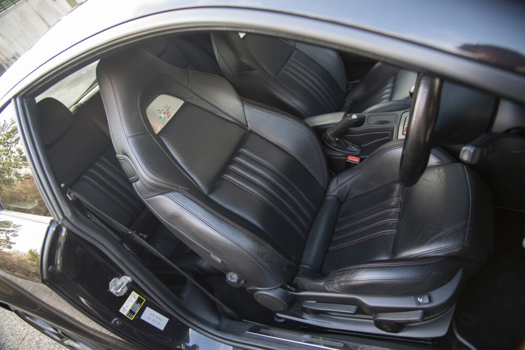 Inside the 3.2 V6 JTS Alfa Brera S, changes are more obvious. Not only are the supportive sports seats upholstered in soft black Frau® leather with red stitching, so are the dashboard fascia, door panels, steering wheel and gearlever. The centre console and instruments are faced in a dark finish. This interior can also be specified on the 2.2 JTS version.