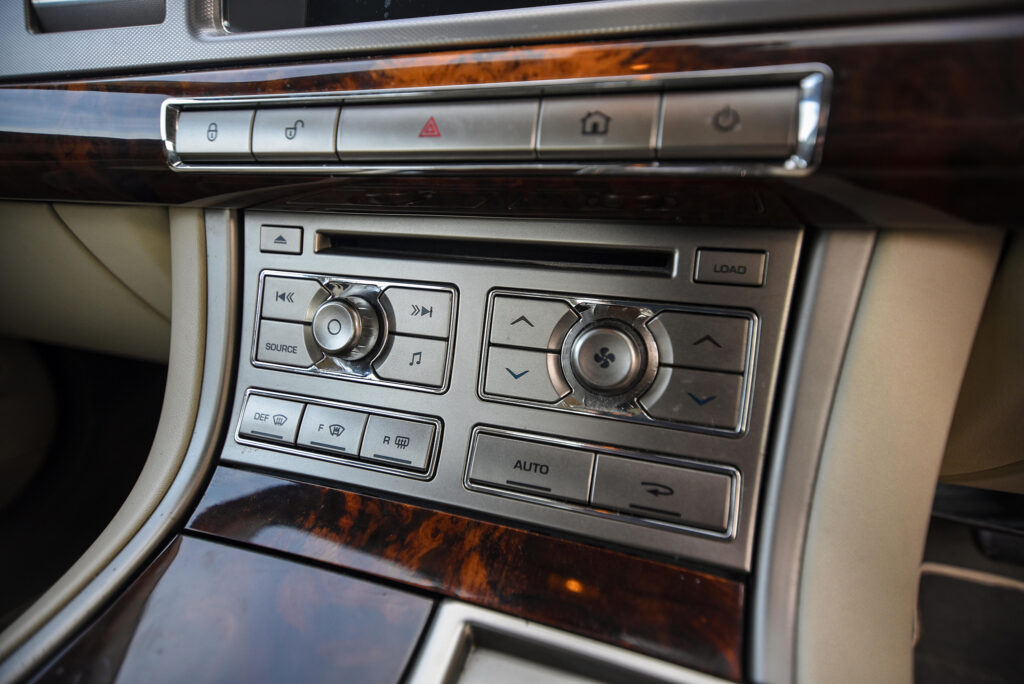 Other innovative functional features add more surprise and delight. Air-conditioning vents present a flush dashboard surface until the ignition is switched on, at which point they elegantly rotate to the open position. Another new technology – JaguarSense TM – introduces touch or proximity-sensing control for overhead console lights and the glovebox release.