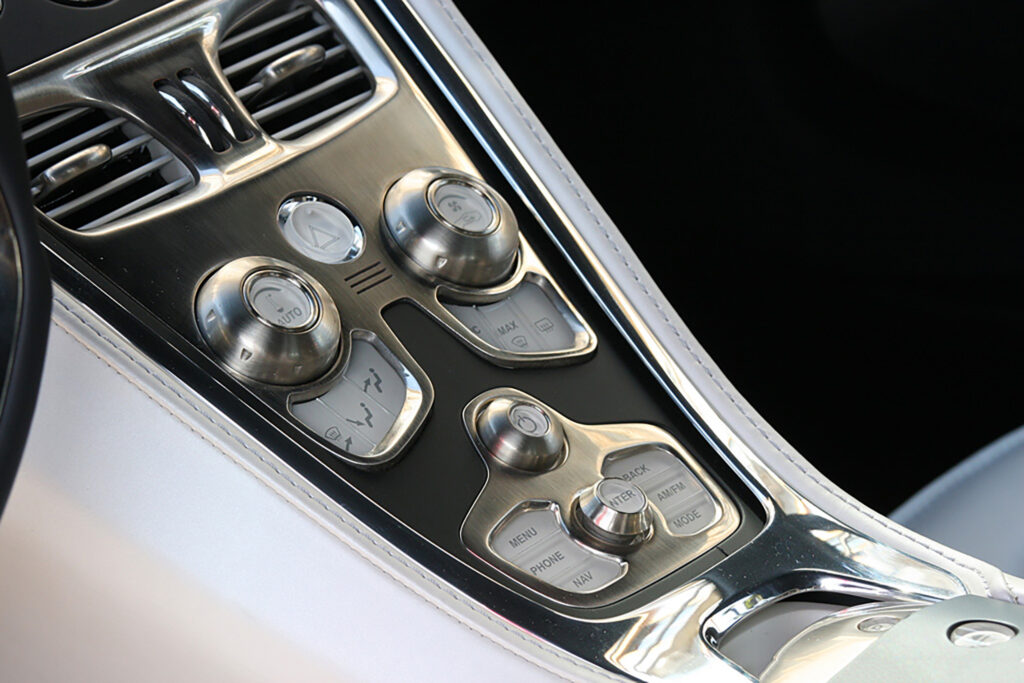 Wearing Pirelli P Zero Corsa tyres (255/35 ZR20 front, 335/30 ZR20 rear) developed specifically for the One-77, all 700+bhp is transmitted to the road through the rear wheels via a new six-speed gearbox. Controlled via column-mounted paddles behind the steering wheel, this robotised sequential manual is a new generation of Aston Martin’s familiar transmission. Though it is made specifically for the One-77 and features specially strengthened internals to cope with the tremendous power and torque, the lessons learned in its development will ultimately find their way into the company’s series production models.