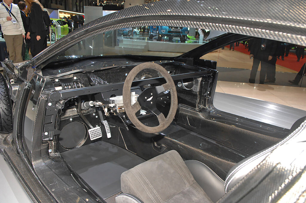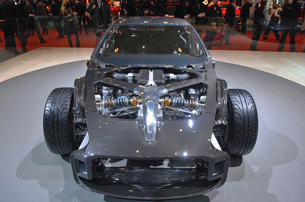 While functionality and efficiency are paramount in the design and construction of the One-77’, so too is aesthetic beauty. To this end every single component has been crafted from the finest materials with absolute attention to detail. From the mesmerising weave of the glossy carbon fibre tub and the abstract, sculptural beauty of the dry sump’s oil reservoir, to the unerring precision of the billet machined aluminium suspension mounts, the One-77’s rolling chassis is an automotive masterpiece.
