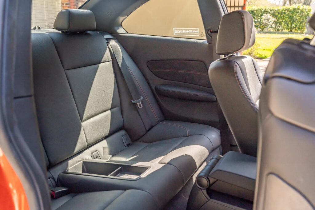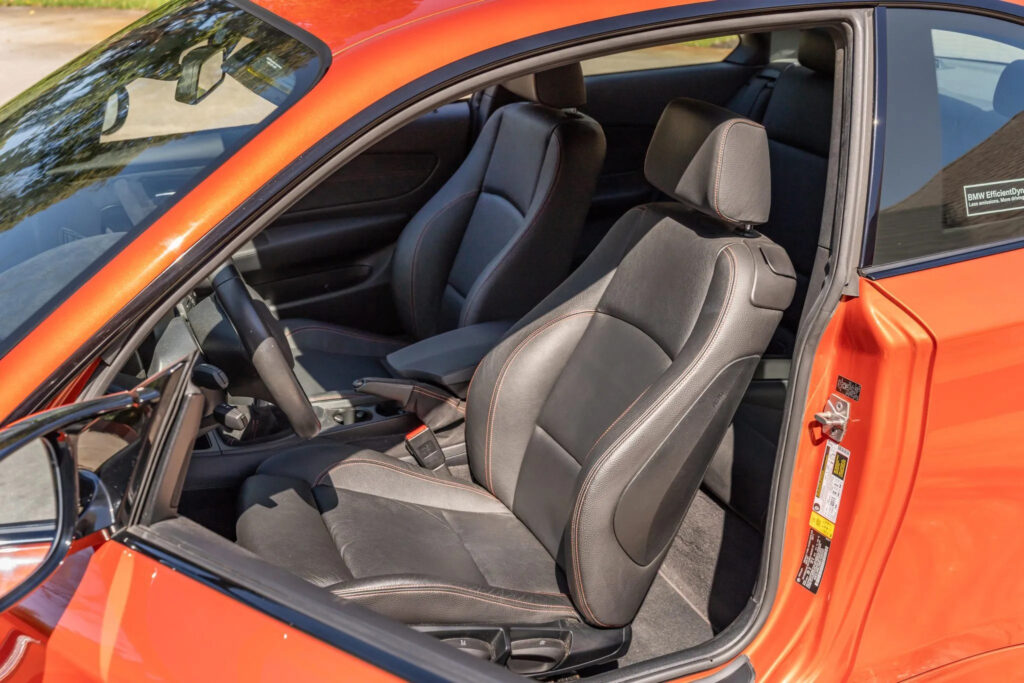 It is not least due to the exclusive interior design that the unmistakable M feeling can be sensed even before the engine is started. The characteristic M cockpit and a model-specific colour and materials concept create a style which perfectly recreates a sports car ambience. The standard sports seats in Boston leather offer both driver and front passenger excellent lateral hold even when taking bends in dynamic style. The design, created exclusively for the BMW 1 Series M Coupe, includes orange contrast stitching on the black surfaces of the seats and backrests as well as the M logo embossed in the front of the headrests.