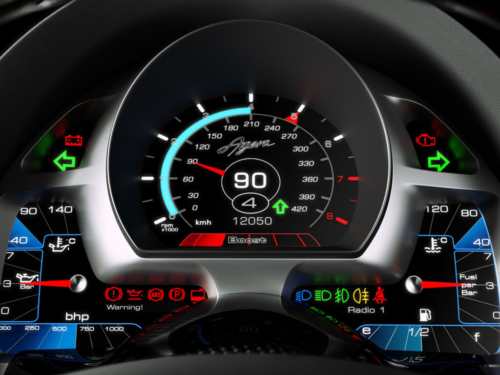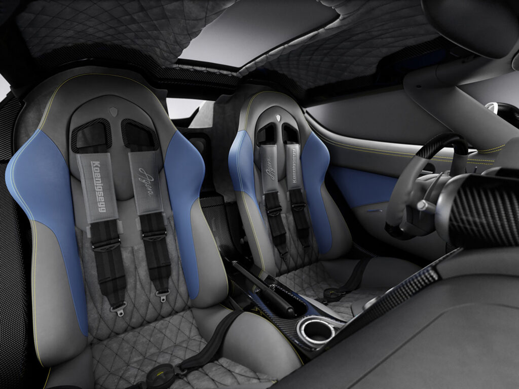 Furthermore, the driver can easily select the information he wants displayed in front of him, on the all new multi-info cluster combined with the upgraded infotainment display, ranging from basic functionality, to G force meter, power meters, Sat-nav, music, lap-timer or compasses – to best suit the current driving conditions, be it highway cruising, touring country roads, city navigation or serious track driving. Furthermore the interior features the new Agera stitching and seams, which gives an beautiful fluidity to the interior.