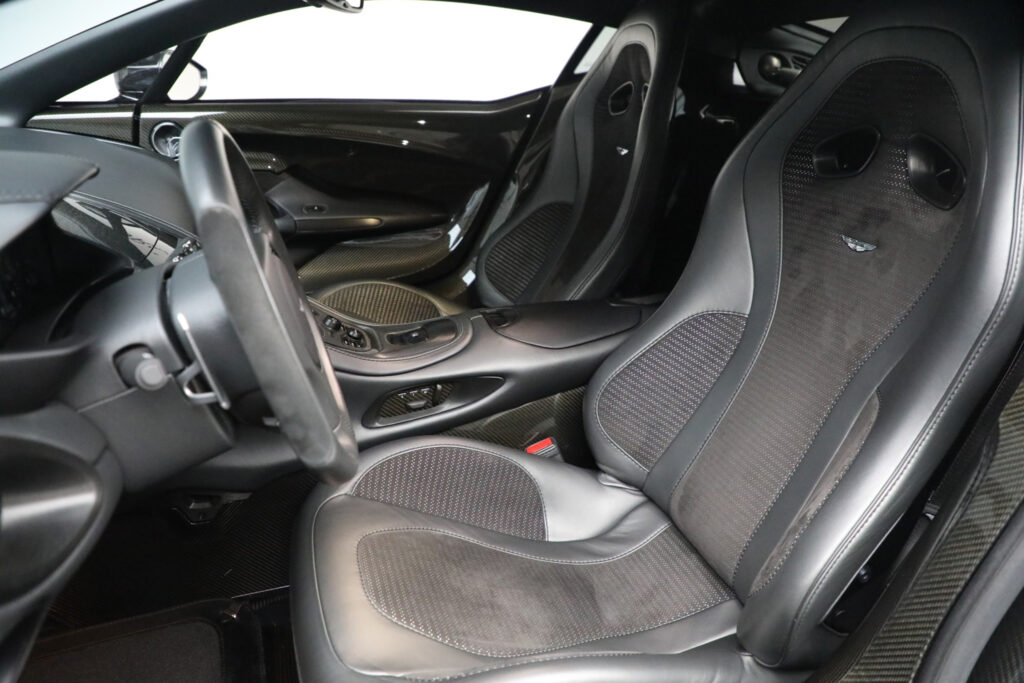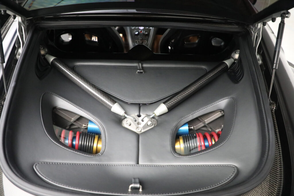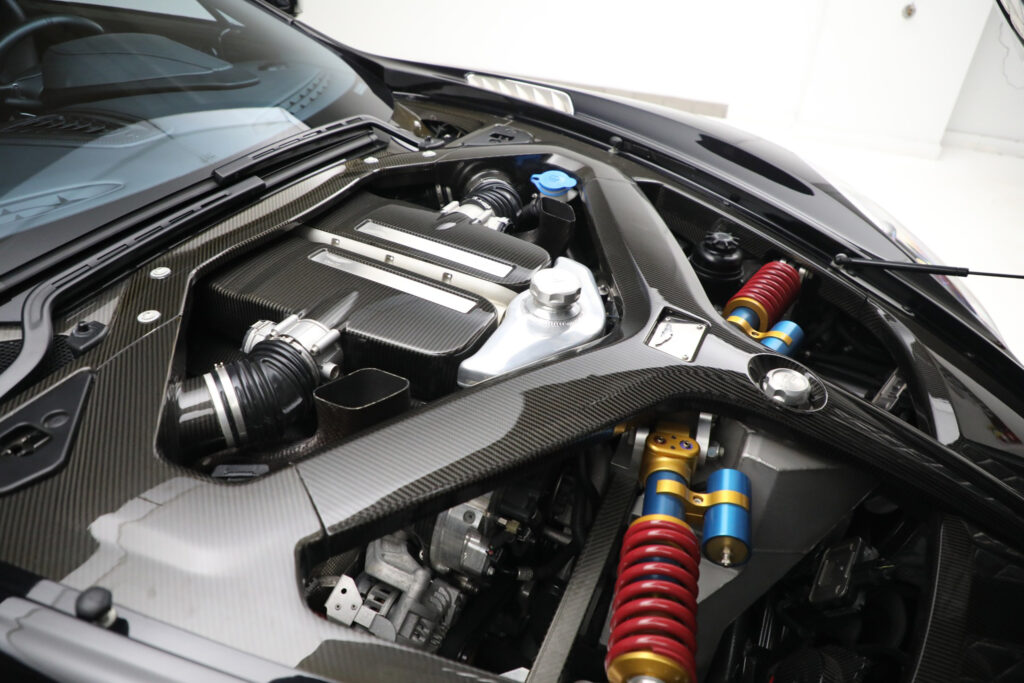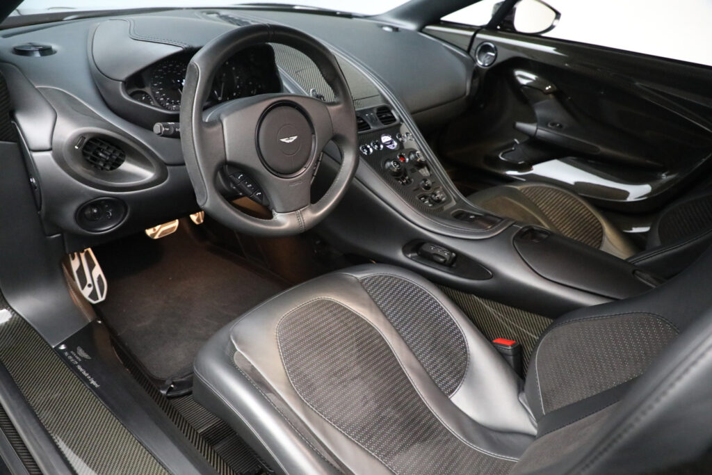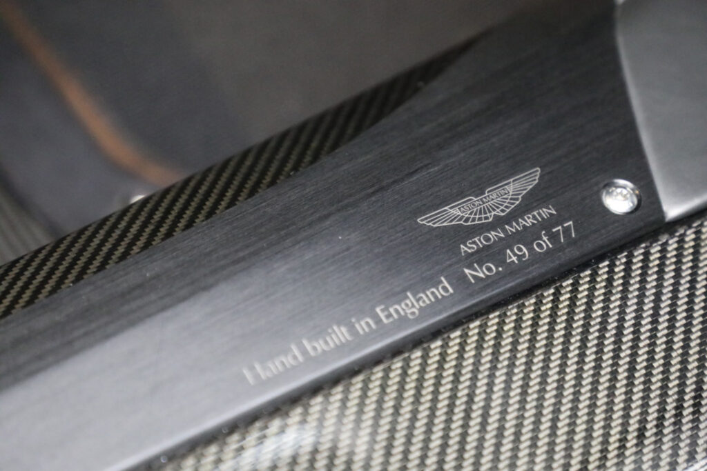 The car uses a carbon fiber tub from Multimatic of Canada in combination with an aluminum body. The DB9 engine was modified by Cosworth and enlarged to 7.3 liters. New cylinder heads were produced to optimize flow and as a result, Aston Martin are currently making the most powerful normally aspirated engine on the market.