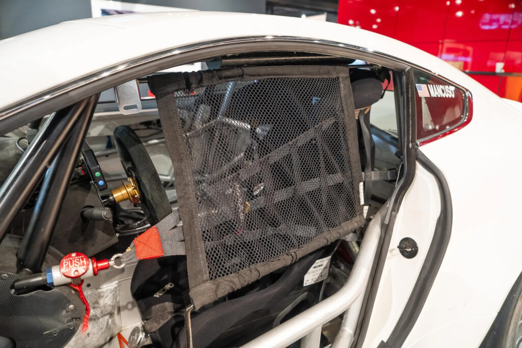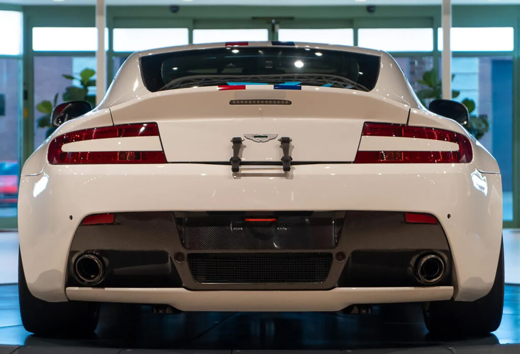 The Vantage GT4’s new splitter increases downforce at the front of the car, as well as channelling cooling air to the brakes and radiator. At the rear, the car gains the V12’s larger boot ‘flip’. This works together with a new carbon fibre diffuser and rear underfloor, which create an area of low pressure under the rear of the car, to increase downforce. The redesigned underfloor also channels more air through a new rear-mounted high capacity transmission oil cooler.