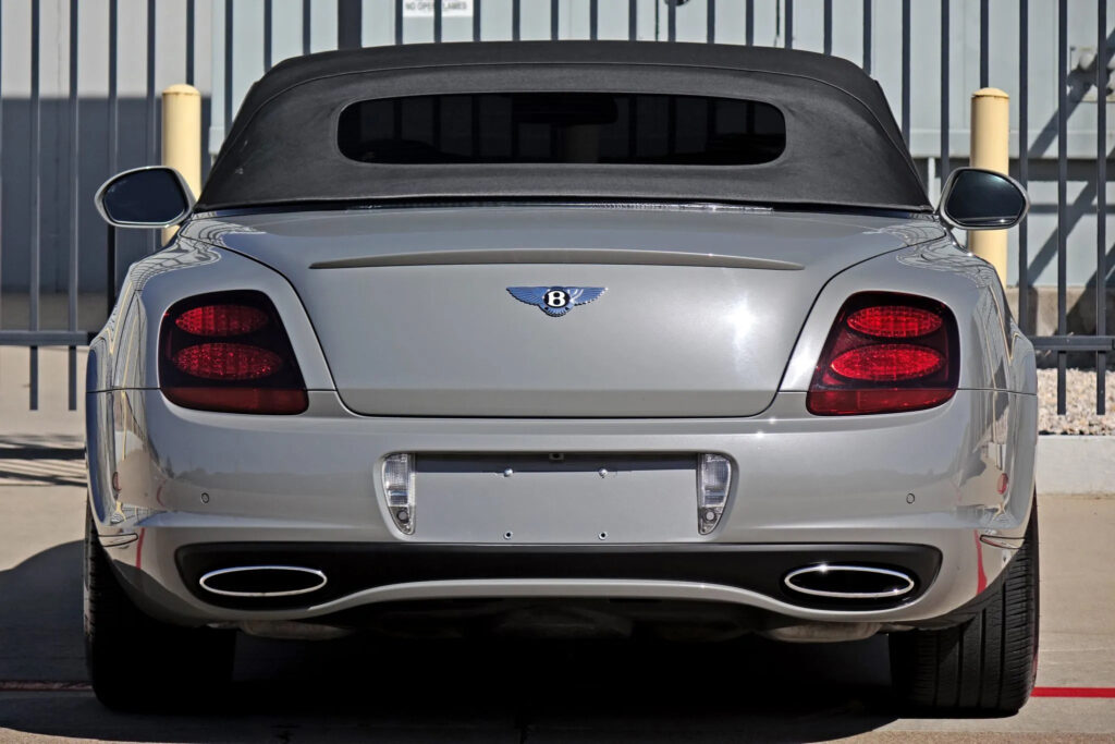 The unique appearance of the soft top is created in the outer layer by a ‘grey’ acrylic fibre with a semi-transparent ‘metallic look’ in a twill weave construction. The car’s potent performance is further accentuated by 20” inch, 10-spoke Supersports wheels with a dark tint finish.