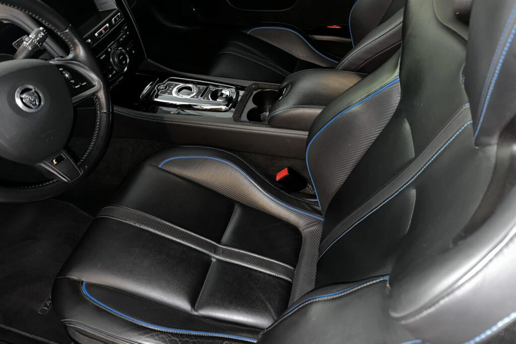 The sense of occasion offered when driving the XKR-S will be heightened by the new carbon leather accents covering the seats, featuring unique contrast micro-piping and stitching combinations in Reims Blue, Red and Ivory. Duotone combinations of Charcoal with Tan and Charcoal with Red are also available.