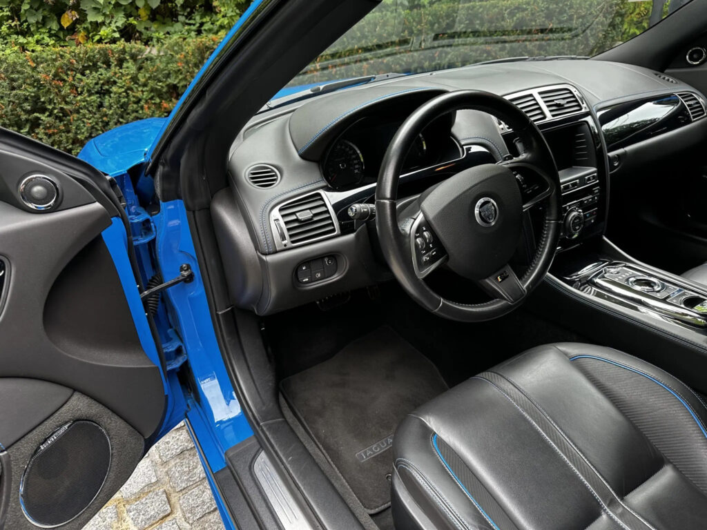 The performance intent of the XKR-S is clear from the moment the driver enters the cabin thanks to new cosseting Performance seats with prominent shoulder wings for close support during hard cornering. The seats feature 16-way adjustment, memory and heating functions while a new three-spoke steering wheel provides the perfect interface between car and driver.