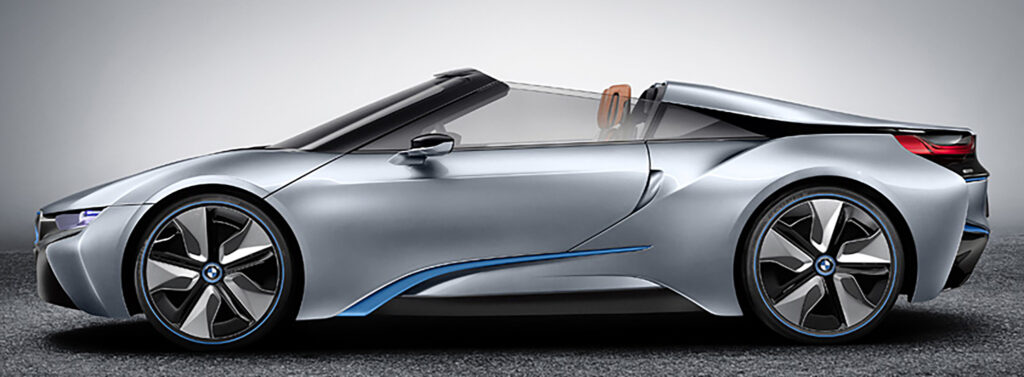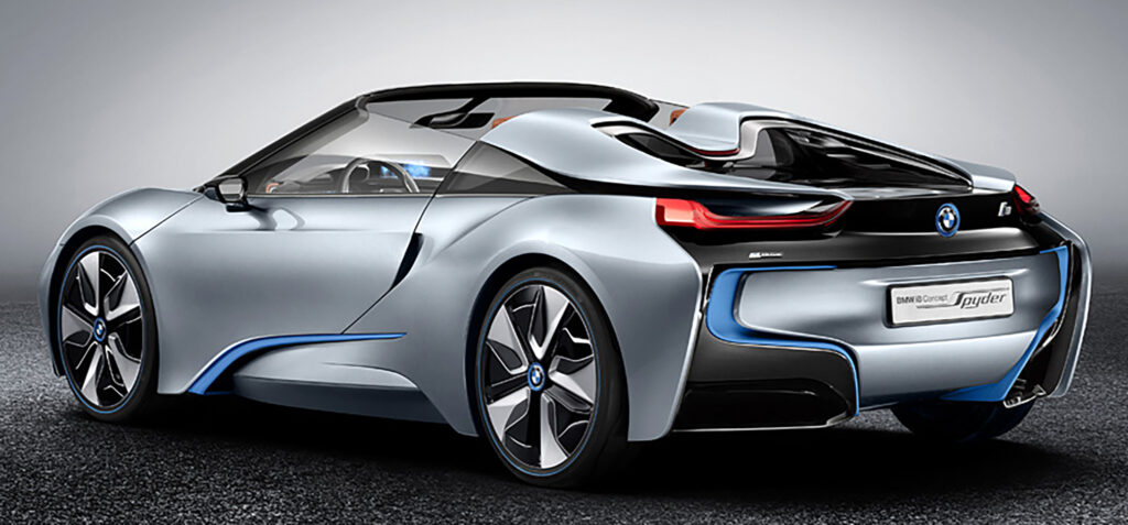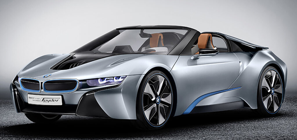 The BMW i8 Concept Spyder with eDrive is an open-top two-seater embodying a form of personal mobility with equal sporting and emotional appeal.