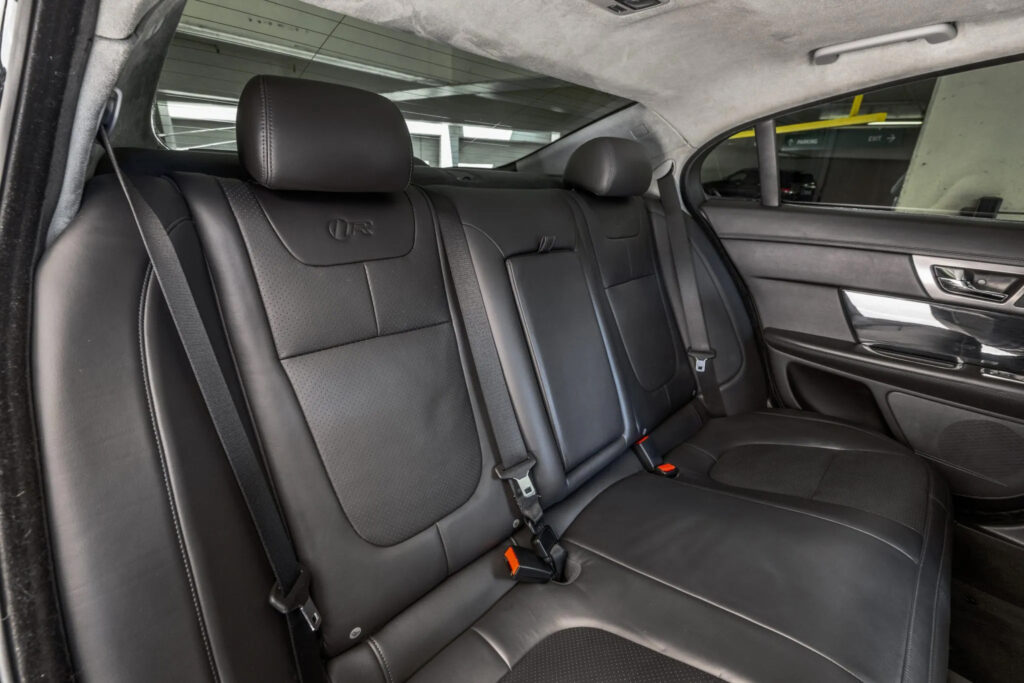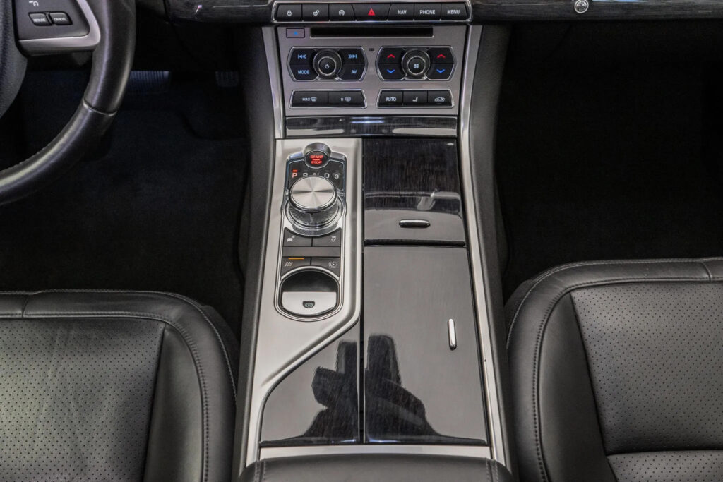 The tail lamps have been entirely renewed and now extend onto the central portion of the boot lid. These new units are now full-LED for stop, light and indicator functions and give the XF a distinctive night-time rear signature. Separating them is a revised boot lid finisher with a gloss black lower edge for a cleaner appearance. The boot also features power closure on all models.