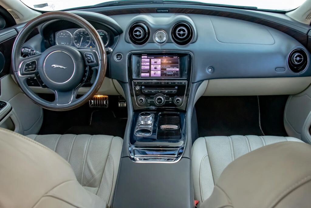 The XJ Ultimate is offered in three interior colourways for the sumptuous leather that covers virtually every surface and is also used for the headlining; Jet on Jet, or Ivory seats and lower surfaces with either Mineral or Bordeaux uppers.
