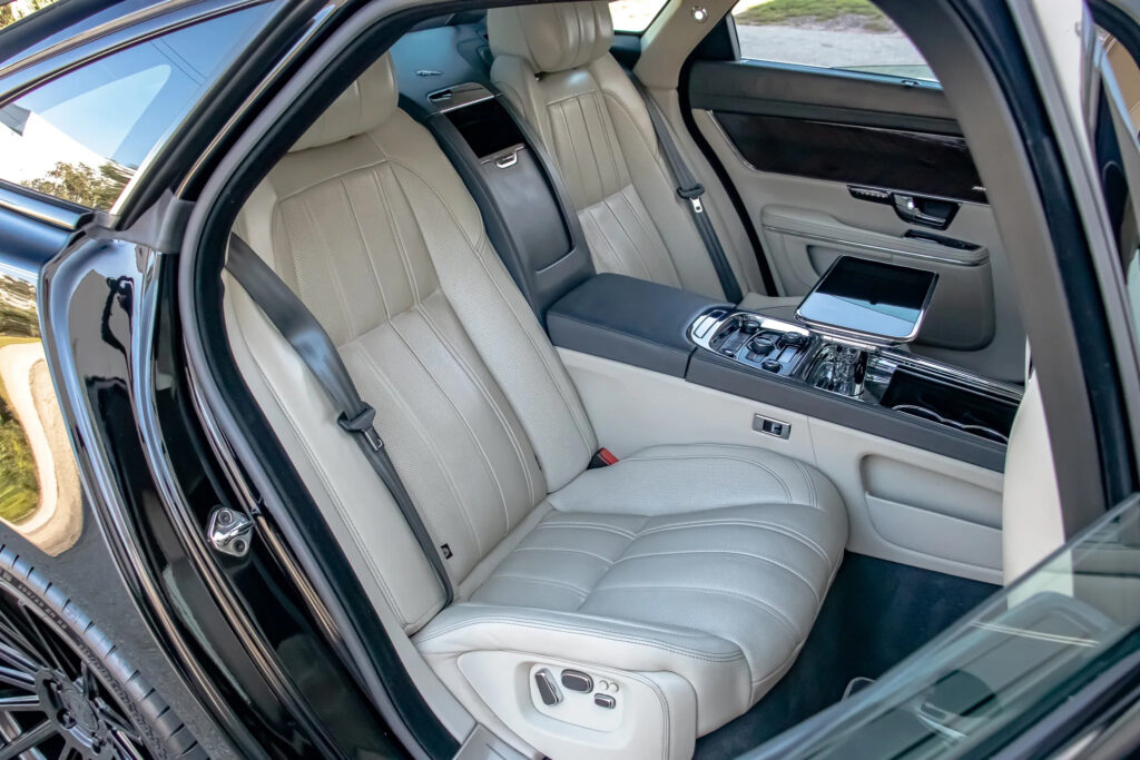 Rear-seat passengers are also provided with a range of entertainment options to enjoy while sipping their champagne. The XJ Ultimate is fitted as standard with Jaguar’s Rear Seat Entertainment package which comprises two eight-inch high-resolution screens mounted on the back of the front seat headrests.
