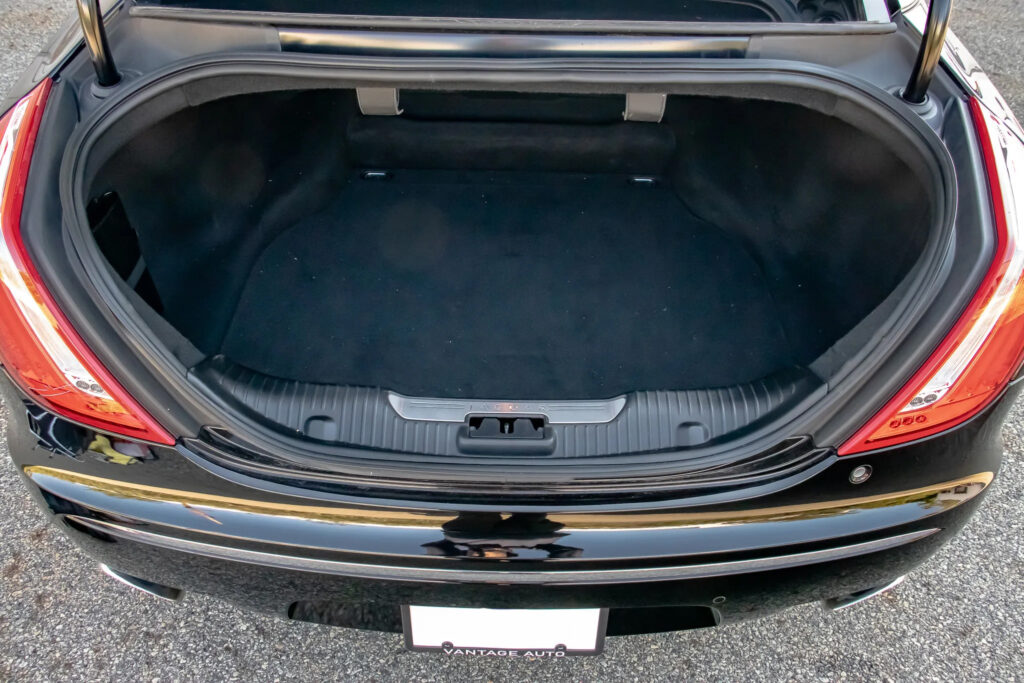 The flutes are, of course, there for a reason: discreetly integrated between the rear seat backs, covered in soft-grain leather and marked by a chrome Jaguar leaper is a hidden champagne chiller. Lined in the same flock as the champagne flute recess to give the impression of a bespoke suit lining, it holds one standard sized champagne bottle which, when the cabinet door is opened, is effortlessly presented forwards to the passengers. The champagne is kept perfectly chilled at the optimum temperature range of 7°C-10°C.