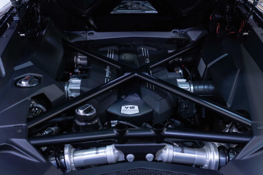 These numbers, combined with a drive train featuring a centrally located, 6.5 liter aspirated V12 generating 700 hp, an ISR 7-speed gearbox and push-rod suspension make the new Aventador Roadster a unique super sports car with no direct competition.