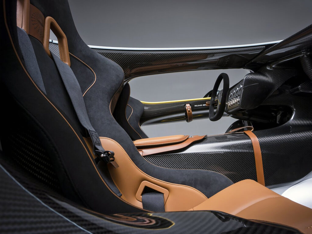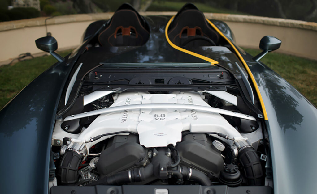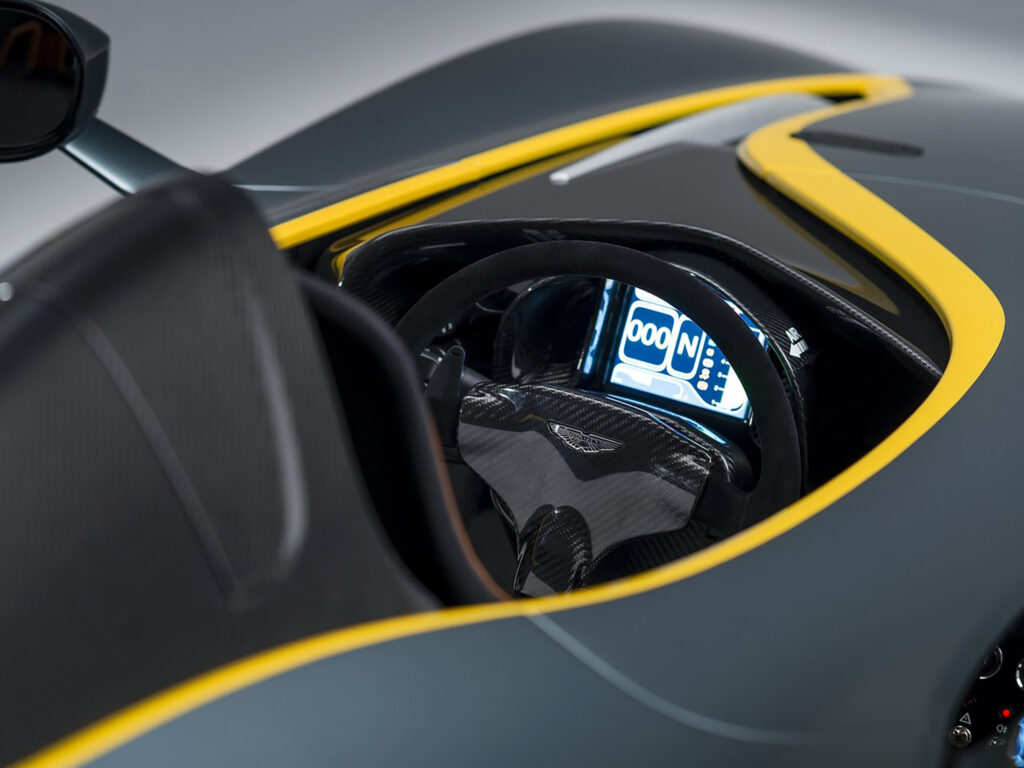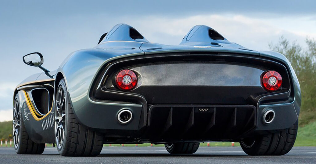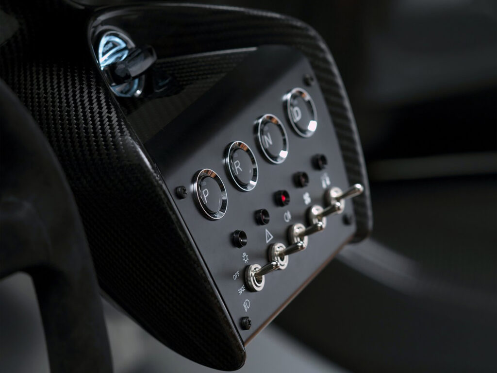 With a body and interior crafted from carbon fibre, tooled and provided by low volume specialists Multimatic, the CC100 utilises the latest generation AM11 naturally aspirated V12 gasoline engine mated to a six-speed hydraulically actuated automated sequential manual transmission. Controlled via steering column-mounted paddle shifts the lightweight ‘box delivers truly sporting changes perfectly suited to the Speedster’s track-focused nature.