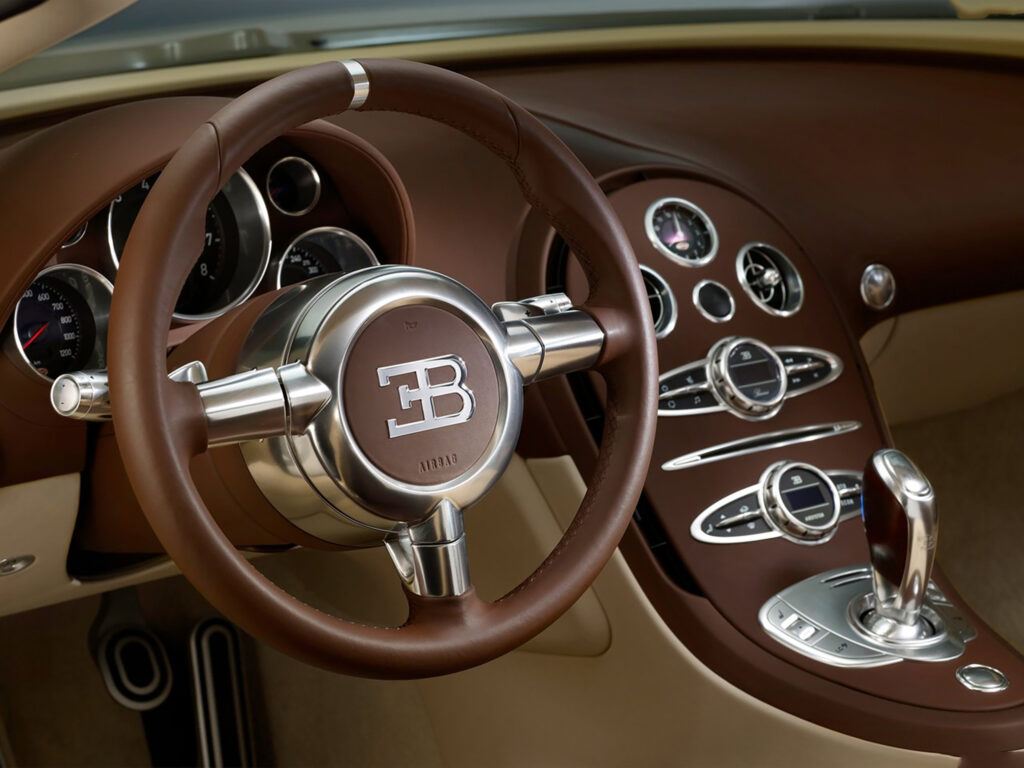 The results of this passion for detail and the desire to use the finest materials throughout the engineering process can be observed in the interior’s steering wheel as well – as for the exterior of the vehicle, the EB logo has been styled in gleaming platinum. Also staying true to the original Type 57SC is the selector lever, which is rendered in valuable rosewood.