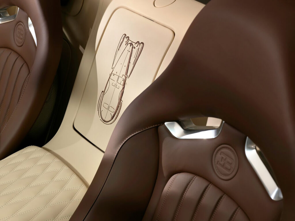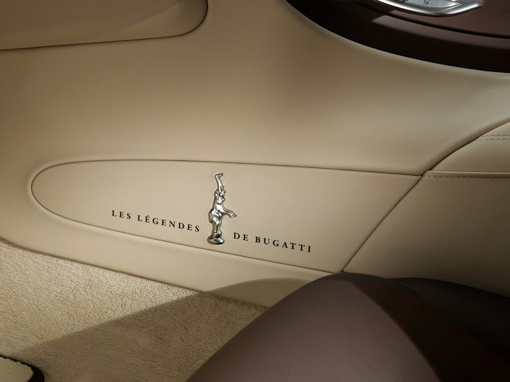 In reference to the Legend Edition’s namesake, the signature of Jean Bugatti has been lasered onto the petrol and oil cap and painted Arctic grey.