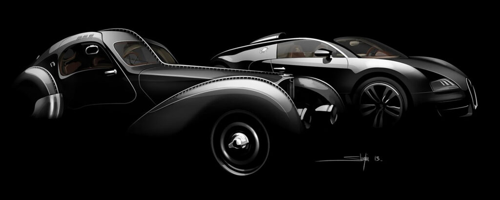 In developing the Jean Bugatti Legend Edition, the designers at Bugatti aimed to follow the concept of its historic predecessor, the Type 57SC Atlantic La Voiture Noire, as closely as possible.