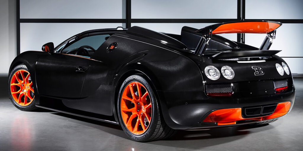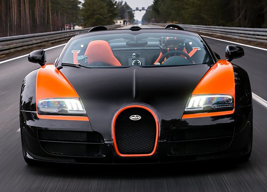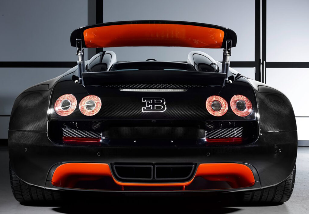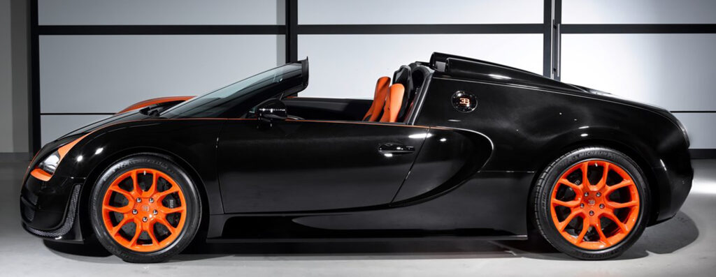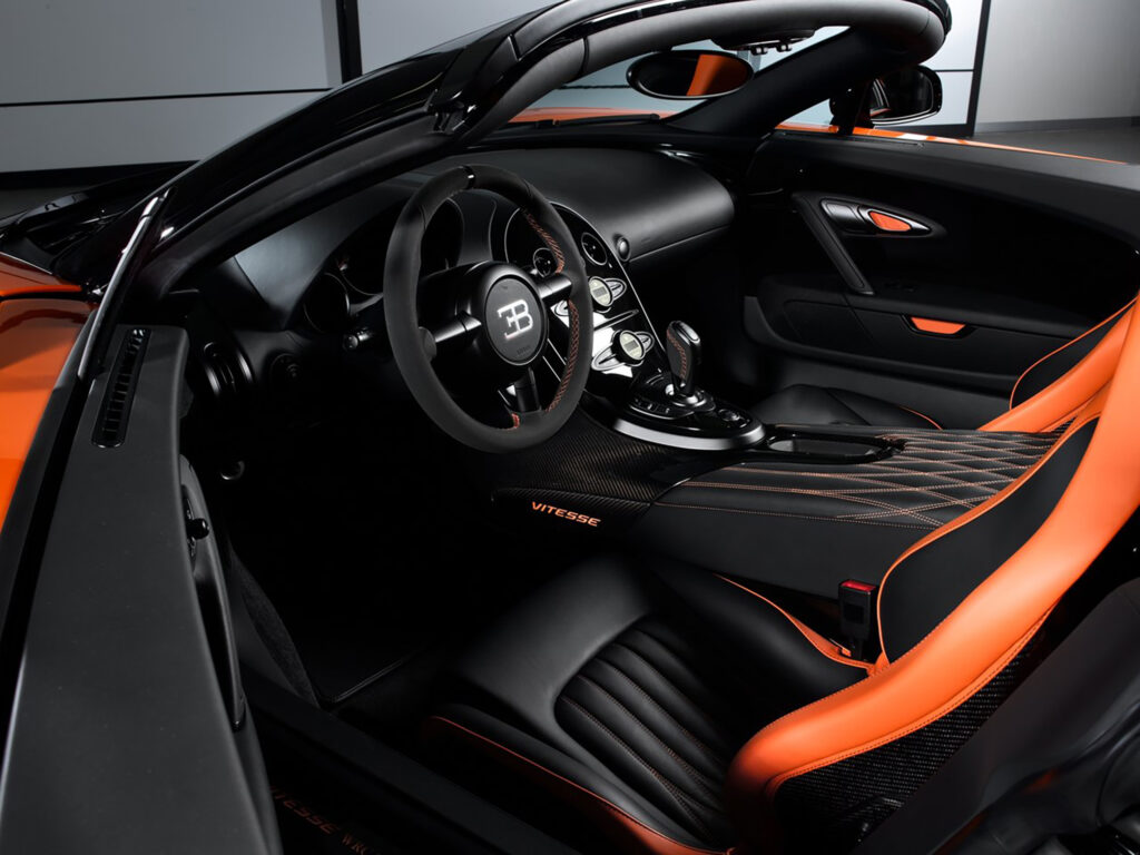 For the record-breaking drive, the Vitesse received a powerful dual-colour scheme in black and orange, perfectly translating its inner qualities into its exterior appearance. This special Bugatti Veyron 16.4 Grand Sport Vitesse will be available in a World Record Car (WRC) Edition, which is limited to eight vehicles. The price per vehicle is 1.99 million euros (plus tax).