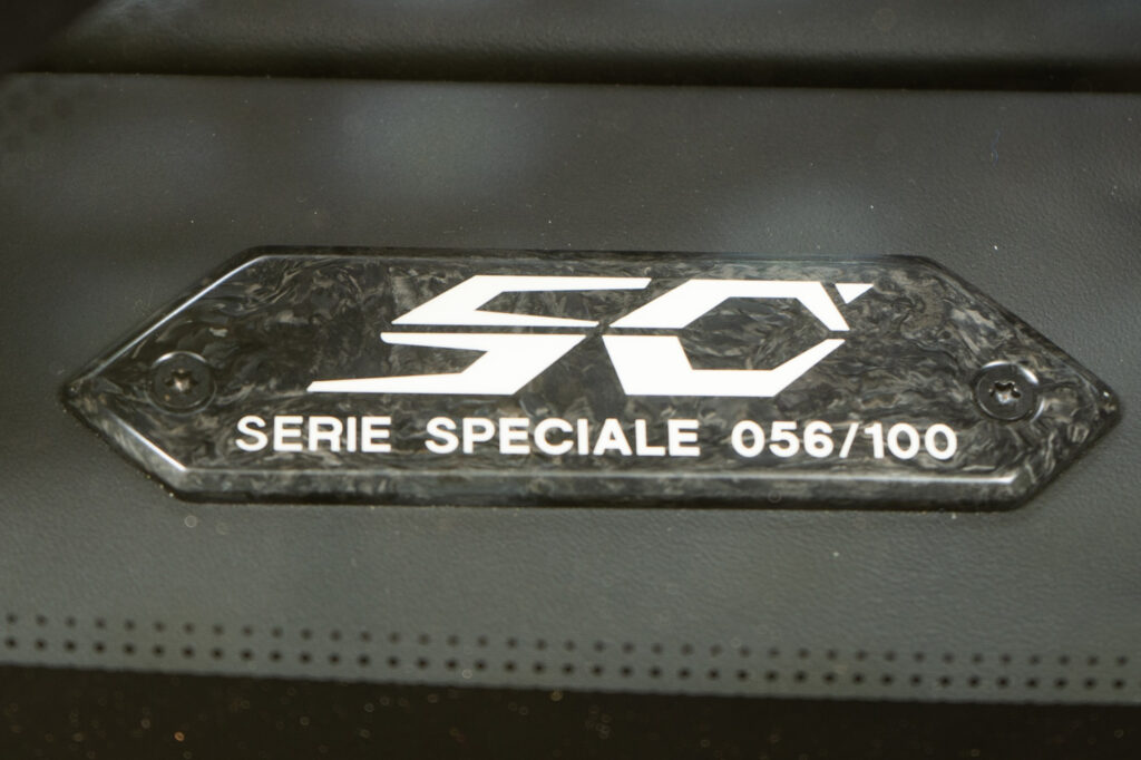 All Lamborghini models built in the 2013 anniversary year feature the 50th anniversary emblem in the cockpit. Like every Lamborghini, it is made using a combination of hi-tech and artisanal craftsmanship – the emblem is produced in Forged Composite, a carbon-fiber material patented by Lamborghini. The glazed “50th” logo is then applied by hand by experienced specialists.