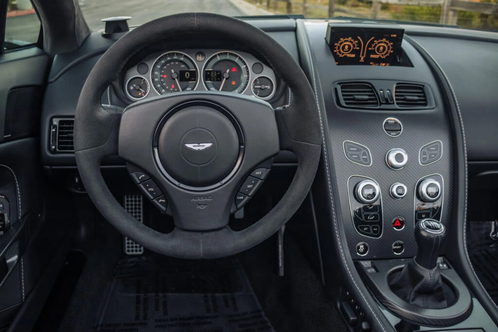 Optimum braking performance is delivered via the specially-created carbon ceramic discs all round, with near-identical brakes appearing on the brand’s ultimate GT, the Vanquish. Meanwhile a whole new lightweight exhaust system – derived from that of Aston Martin’s most expensive and exclusive production model, the One-77 hypercar – is wonderfully sonorous.