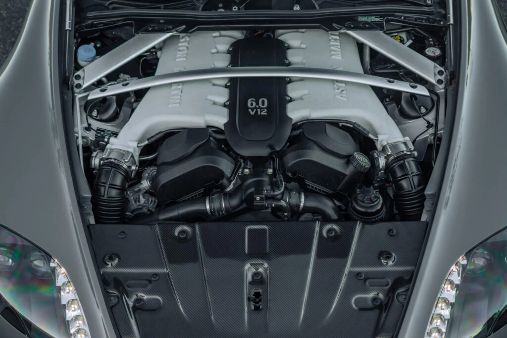 Equipped with the latest 565 bhp (573 PS) Aston Martin AM28 6.0-litre V12 engine, featuring state-of-the-art Bosch engine management, the car is capable of reaching 201 mph and sprinting from rest to 60 mph in only 3.9 seconds (0-100km/h 4.1 seconds).