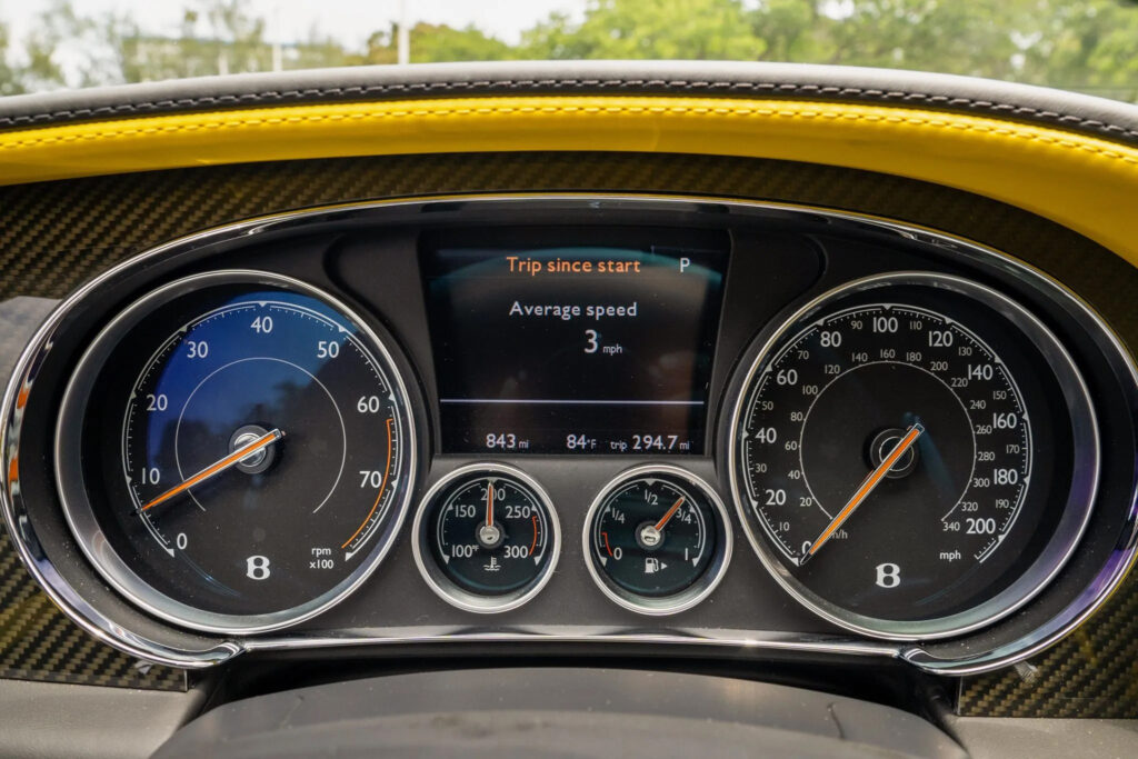 The visual changes continue inside the cabin of the GT Speed, starting with a completely new colour split reserved exclusively for the Speed models. Starting with a dark monotone interior, accent stripes in a contrasting colour are applied across the doors, rear panels, fascia wings, inner console and gear lever. Matching contrasting stitching is then sewn to various aspects of the cabin, with a new cost option to continue contrast stitching through the diamond quilting of the seats and doors. Speed branding is also sewn to the front and rear headrests, while a subtle yet elegant chrome “Speed” badge adorns the passenger side fascia panel.
