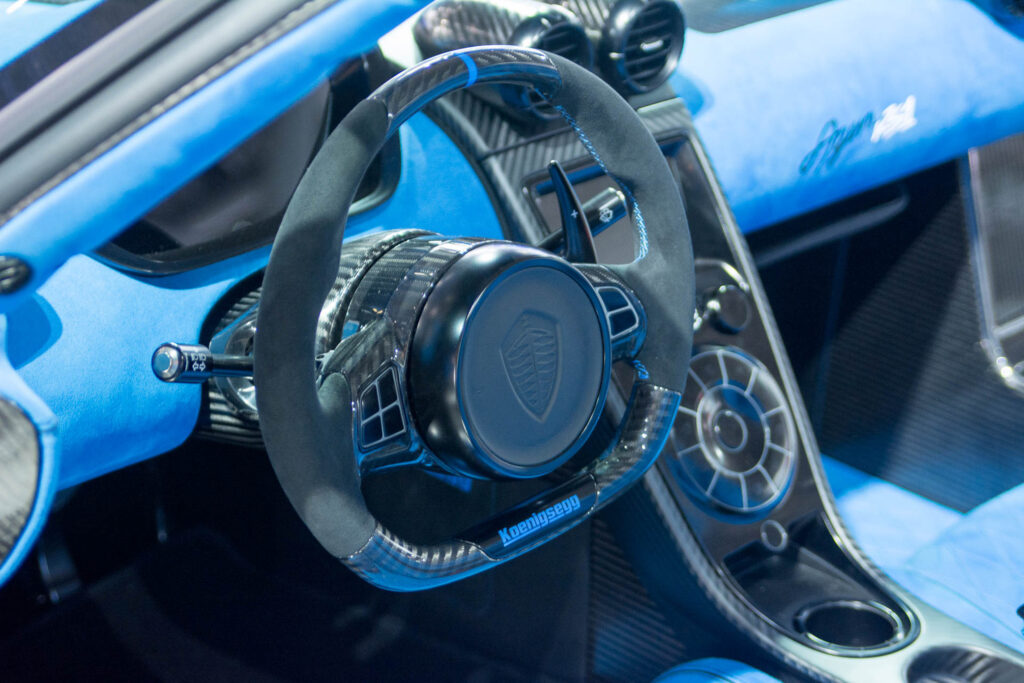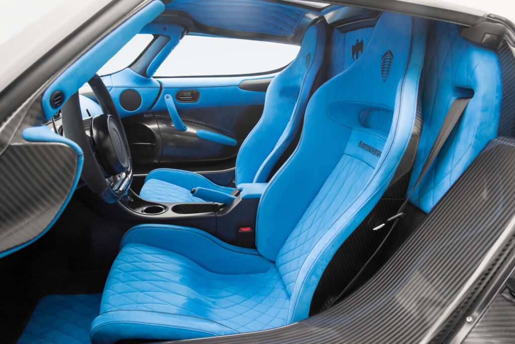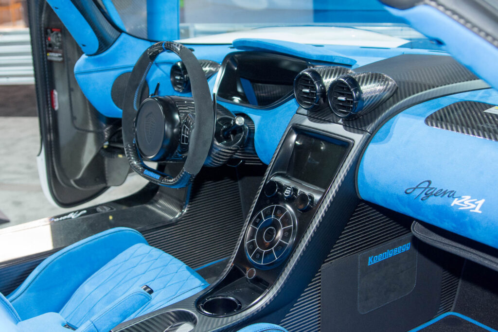 The Agera RS1, along with the other RS models, has a number of creature comforts and convenience features, including satellite navigation, Bluetooth-equipped entertainment, adjustable pedals and power seats, and a hydraulic lifting system to give the car added clearance when needed. It also features a removable roof that stows in the front storage area under the hood.