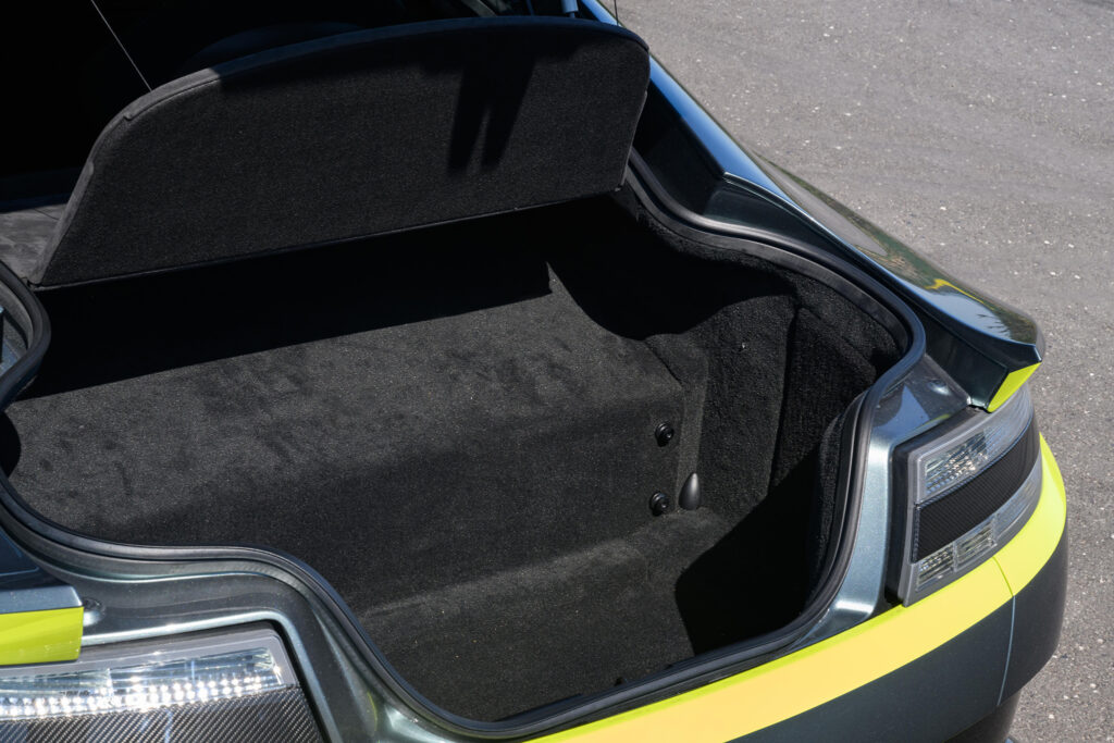The first thing that you will notice about the GT8 is its massive rear wing. It’s made from carbon fiber. The front splitter, roof and door sills are also made from carbon fiber as well. However, the use of carbon fiber especially on its wing and plastic rear window is optional which is a bit cheeky considering that the car has a 200k asking price. That price makes the GT8 expensive than the V8 Vantage S despite of it just having 10bhp increase from its 4.7-litre V8 engine.