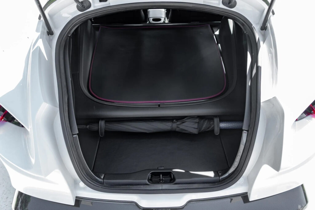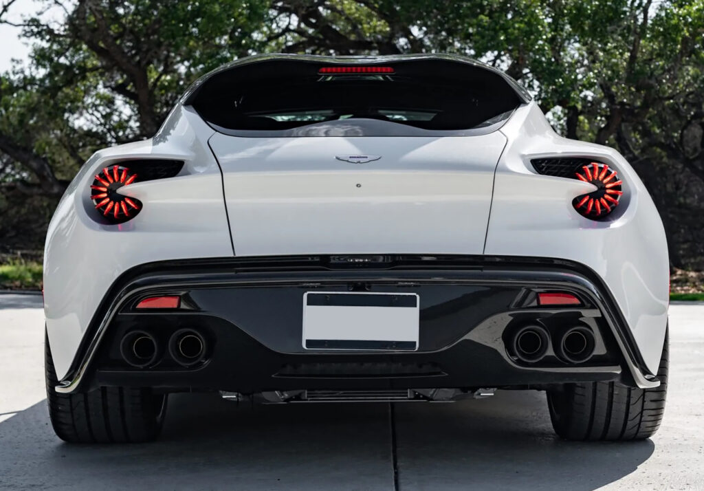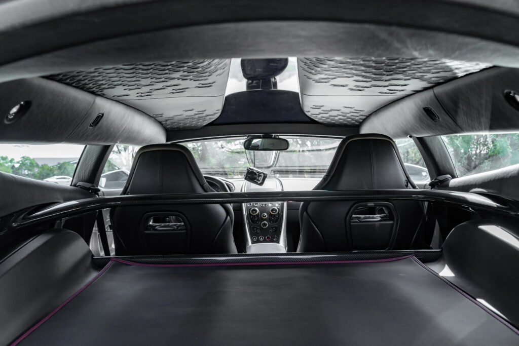 Crafted entirely from Carbon Fibre, the Vanquish Zagato displayed several distinctive design elements synonymous with Zagato’s style. These included the iconic ‘double bubble’ roof and a prominent front grille with an exquisite ‘Z’ pattern. At the rear, futuristic bladed LED lights added a touch of sophistication.