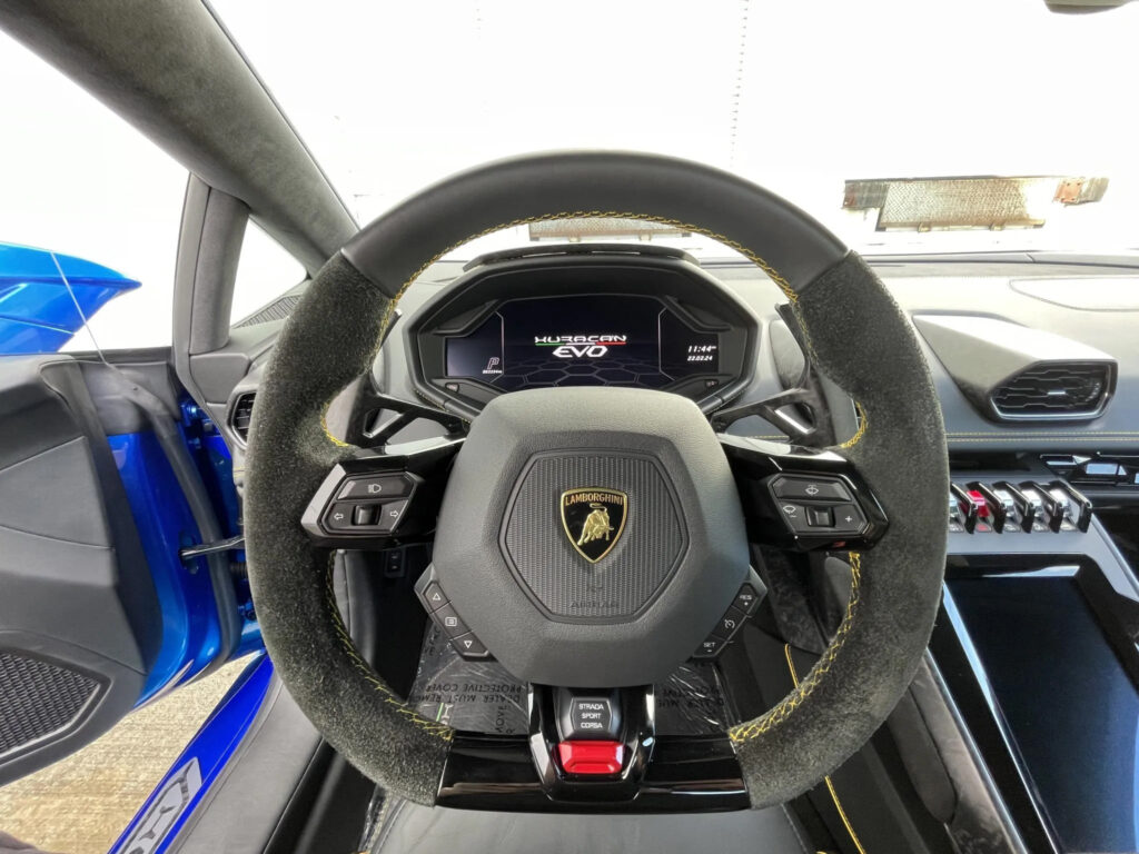 Lamborghini Piattaforma Inerziale (LPI) version 2.0, launched on the EVO coupé, is a comprehensive set of accelerators and gyroscope sensors located in the car’s center of gravity, monitoring real-time lateral, longitudinal and vertical accelerations, as well as roll, pitch and yaw rate. The magneto rheological suspension, also upgraded to version 2.0, instantaneously adapts the damping following inputs from the LPI. The new advanced traction control system together with enhanced all-wheel drive and torque vectoring, allows traction to be directed to a single wheel as required. Modified Lamborghini Dynamic Steering (LDS), provides higher responsiveness in corners while requiring the lowest steering angles. Coupled with rear-wheel steering, agility is ensured at low speed with maximum stability in high-speed cornering and under severe braking.