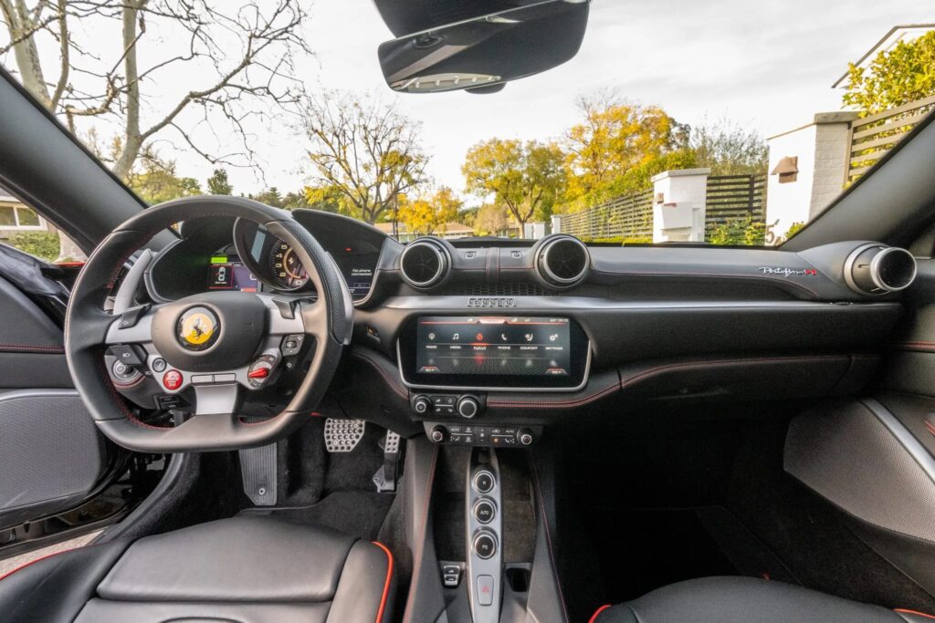 Ferrari Portofino M’s HMI (Human-Machine Interface) er centreret omkring et digitalt instrument panel med 2 TFT skærme placeret på hver side af en analog omdrejningstæller. Infotainment systemet styres af en touchskærm, der er placeret så den er nem at nå, både for køreren og passageren. Systemet har både Apple Car Play og Android Auto. Ved passageren kan man tilvælge en ekstra skærm. Den vil så være direkte forbundet med hovedskærmen, og viser derfor alle informationer i forhold til hastighed, omdrejninger og gear. Denne 7” farve og touch skærm tillader også passageren at vælge musik, se navigation information og vælge nye interesse punkter i navigatoren (POI), som en restaurant, der så automatisk bliver tilføjet ruten.