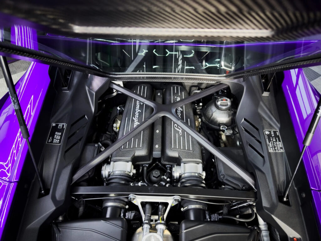 Despite the redesign, the sculpture and design of the rear of the Tecnica still has that Lamborghini trademark and feel. The new vertical rear glass window and the reshaped rear improved visibility. The redesigned engine hood in lightweight carbon fiber showcases the V10 heart of the Tecnica. A new bumper with optimized air inlet can be seen on the rear has been added, clients have the option to choose if their diffuser would come in body color or the optional black, and new hexagonal exhaust pipes gives the improved flair from the Tecnica’s powertrain.