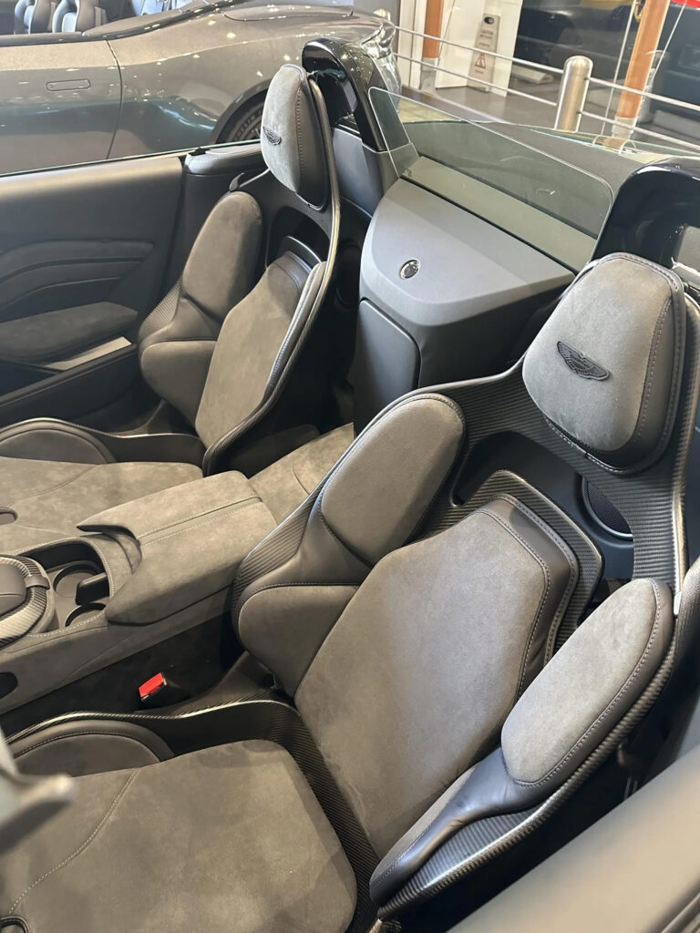 The roof itself comes in ‘Z-fold’ configuration, which is both faster and lighter than a traditional ‘K-fold’ roof and removes the requirement for a tonneau cover, further saving weight and lowering the centre of gravity. The roof on Vantage Roadster can be opened or closed at any speed up to 31mph (50km/h) with the entire roof fold operation (open or closed) taking just 6.8sec – the fastest fully automatic deployable roof mechanism on the market today. Additionally, this slick operation can be performed when seated in the car or remotely via the key, so long as the operator is within a two-meter radius of the car.