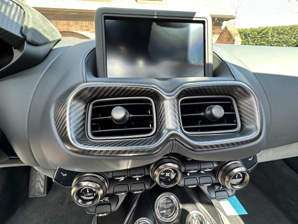 Vantage Roadster, like its Coupe counterpart, is the latest model to feature Aston Martin’s next-generation infotainment. Created in-house and first introduced on DB12, it is entirely bespoke and developed in-house from scratch. The system combines a fully integrated multi-screen system with full online connectivity, featuring 10.25” Pure Black touchscreen technology with full capacitive single and multi-finger gesture control. Touchscreen commands remain balanced with the tactility of physical switches, with buttons retained for the key mechanical operations of gear selection, drive selection, heating and ventilation. There are also control switches for Chassis, ESP and Exhaust, Active Safety System settings and Park Distance Control, ensuring the most used controls can be operated intuitively and without the need to take your eyes off the road. Supplemented by a new Aston Martin customer connectivity app which supports iOS and Android devices, it allows interaction, control and feedback to and from the customer’s Vantage via their personal device.