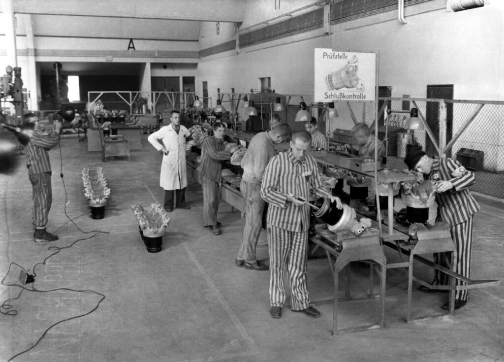 Fra 1941 rekrutterede BMW fanger fra SS, samt fanger fra koncentrationslejre fra 1942. Allach og Dürrerhof oprettede deres egne satellitlejre specielt til dette formål, og ved udgangen af 1944 arbejdede omkring 29000 tvangsarbejdere for BMW. De udgjorde mere end halvdelen af virksomhedens arbejdsstyrke. Uden en så omfattende brug af tvangsarbejde ville masseproduktion ikke have været mulig: arbejderne blev tvunget til at arbejde op til 12 timer om dagen. For især ’østarbejdere’ og koncentrationslejr-fanger kunne selv den mindste hændelse føre til chikane, vold eller endda død. Dødeligheden blandt disse to grupper var særligt høj.