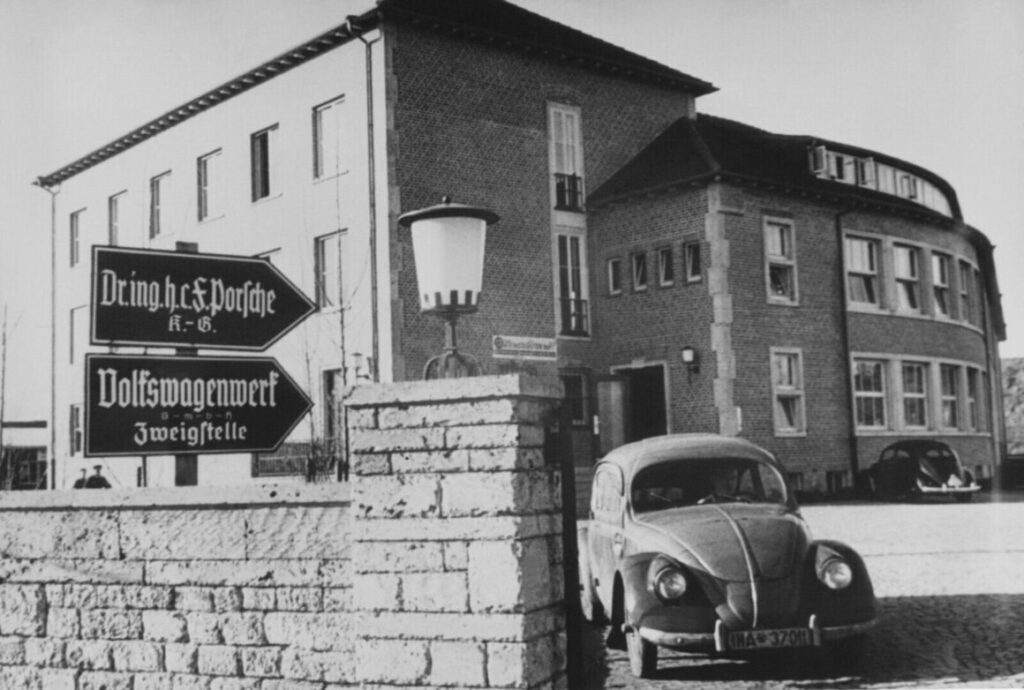 After having undertaken a number of minor projects, in 1933 the design company was awarded the lucrative contract to build a race car for Auto Union. The P-type, weighing 750 kilograms and featuring a mid-mounted engine, was Porsche’s first grand-prix car design, and assured the continued existence of the business. It was followed by a contract from NSU to develop a small car, the Type 32, which with its air-cooled rear-mounted engine, torsion bar suspension and characteristic rounded rear end design exhibited elements of the later Volkswagen. The idea of a low-cost small car for the mass market fascinated Porsche who – like many other designers and engineers at the time – looked to the mass motorisation taking place in the USA. In his “Memorandum on the construction of a German People’s Car”, submitted to the Reich Ministry of Transport on January 17, 1934, Porsche set forth his plan for a fully practical mass-market vehicle. As the “People’s Car” project was backed by the Nazi regime headed by Adolf Hitler, it was taken up by the Reich Automotive Industry Association (RDA), which on June 22, 1934 awarded the independent Porsche design consultancy a contract to develop and build prototypes. The Porsche team solved the technical problems, and Porsche himself became one of the main directors of the company known as “Gesellschaft zur Vorbereitung des Deutschen Volkswagens mbH” founded in 1937. Porsche’s design consultancy, in 1937 renamed Dr. Ing. h.c. F. Porsche KG, acted as an outsourced research and development function for Volkswagenwerk GmbH.